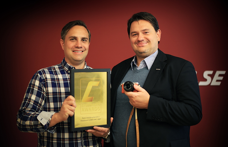 Panasonic Lumix DMC-GM1 svart + Leica Summilux DG 15/1,7 ASPH (På bilden ser du Erik & Mac på Panasonic när de fick ta emot 2013 års CyberPhoto Award för GM1. Årets vinnare utses inom kort!)