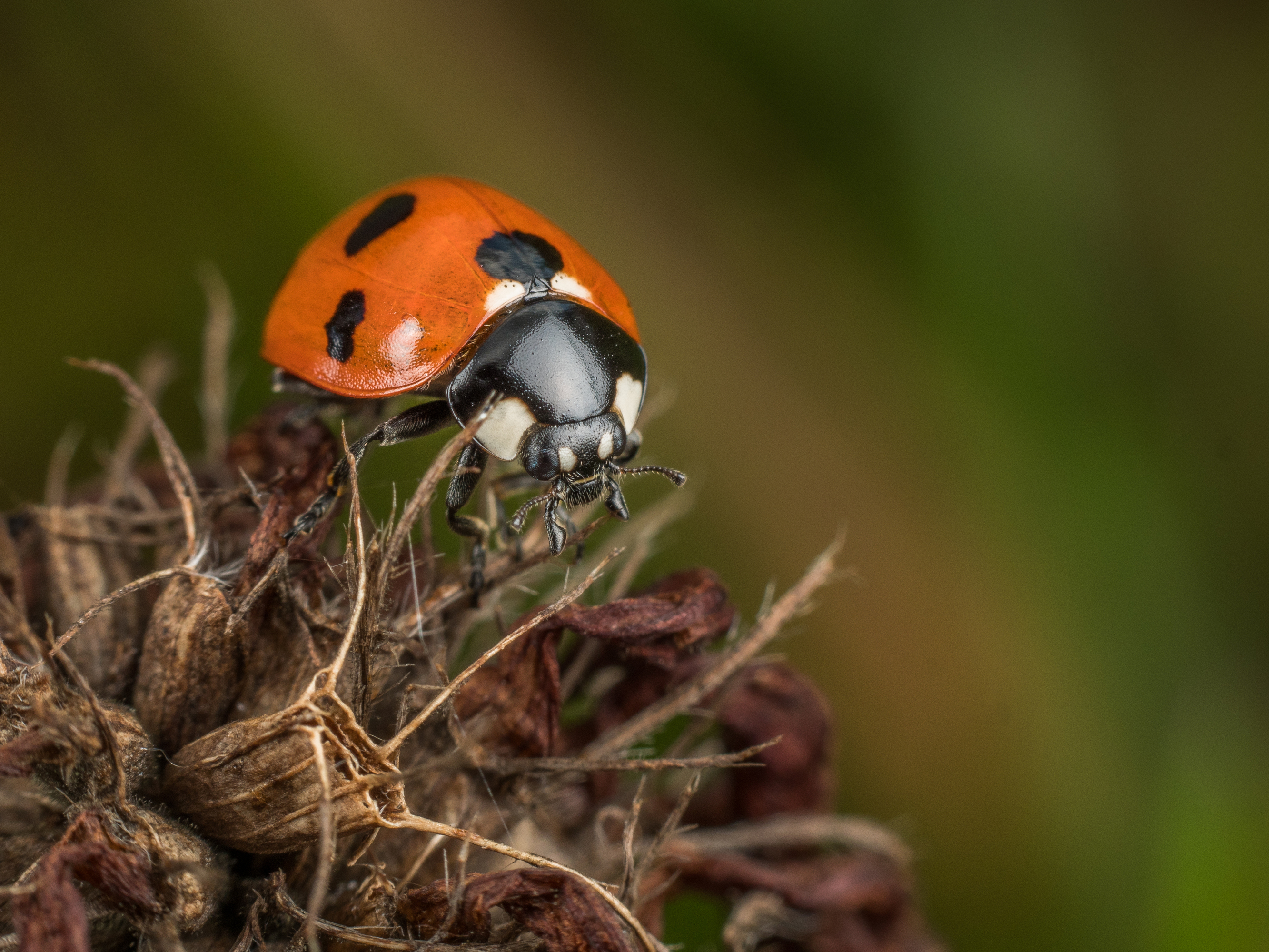 Christian berättar: Jag var på väg hem från en tur i skogen där jag fotat insekter och såg den här nyckelpigan vid gräset intill vägen. Har bara fotat macro i två månader men jag blev rätt nöjd ändå, och hoppas även att nyckelpigan blev nöjd över sitt porträtt!