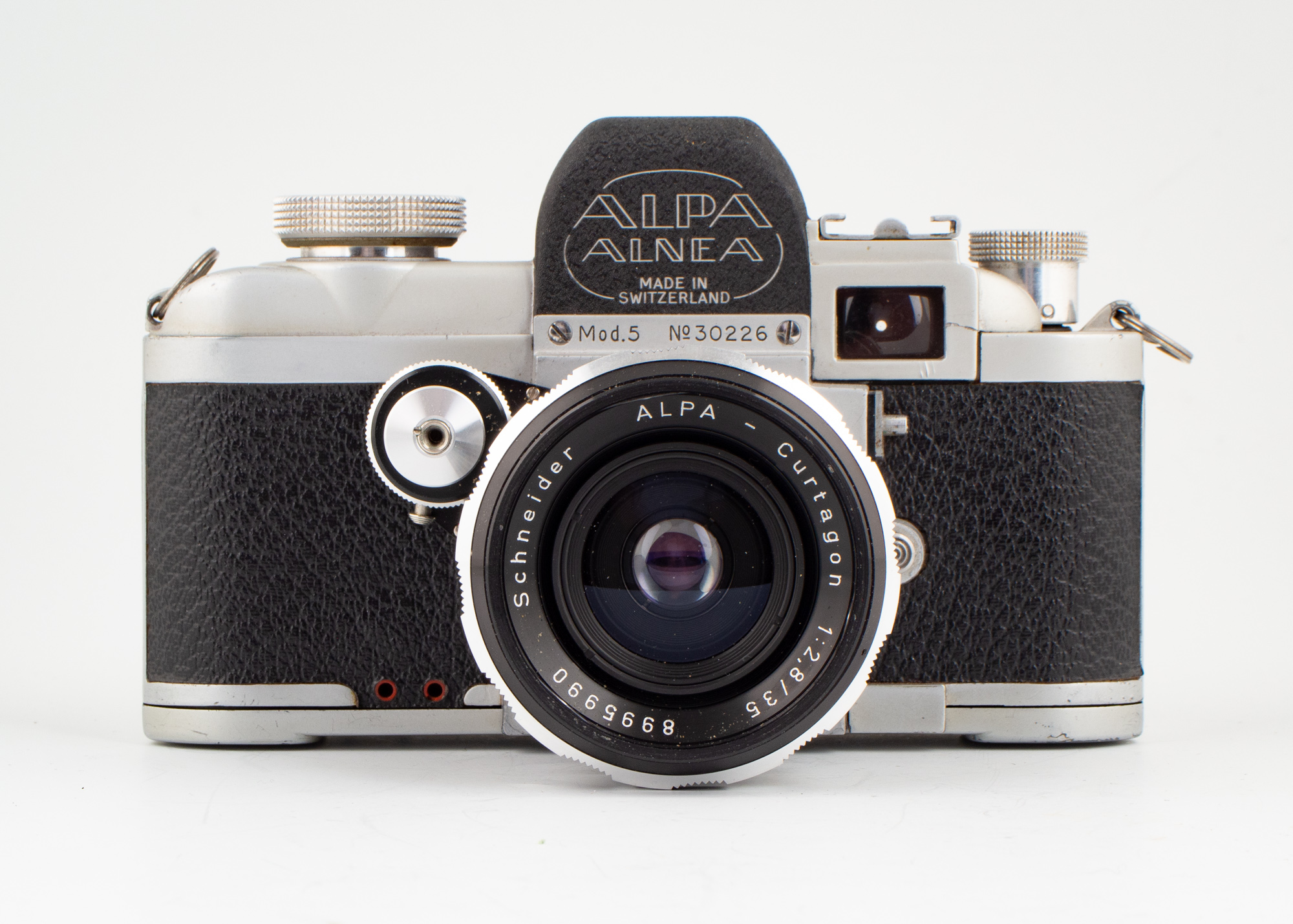 1959-1989 Alpa Alnea/Reflex 5b, första Alpa med automatiskt återgående spegel. 251st i grå och 9st svarta.