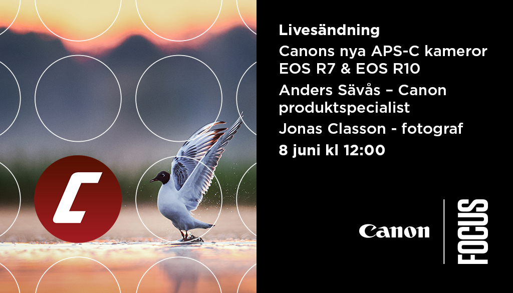 Den 8 juni kl 12 är du varmt välkommen på liveevent där Canons produktspecialist Anders Sävås kommer att berätta mer om deras rykande färska nyheter Canon EOS R7 och Canon EOS R10 som är Canons första APS-C-kameror i EOS R-systemet. På plats är även Canons ambassadör Jonas Classon som kommer att berätta om sin fågelfotografering och visa bilder från sina projekt så missa inte detta!