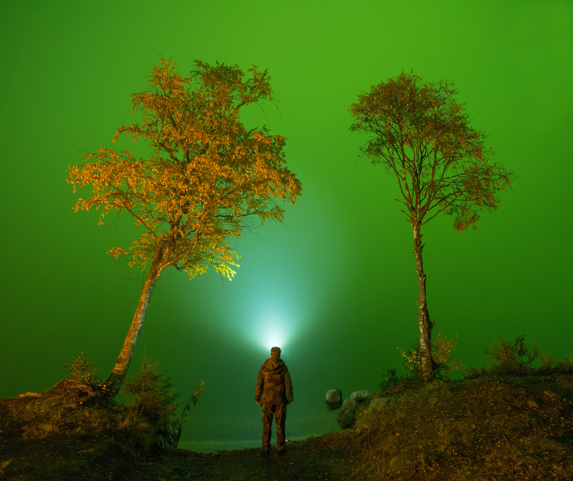 Norrsken i dimma ser ut som en greenscreen.