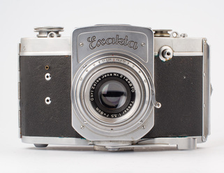 Ihagee tillverkade många fina kameror under sin tid. Idag ska vi kika på en av de lite mer sällsynta nämligen en Exakta 6x6 från 1939. Efter kriget 1951 återupptogs tillverkningen men då har denna modell löstagbar sökare och remfästena på sidan.