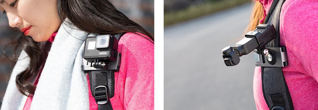 PGYTECH Action Camera Strap Holder låter dig enkelt fästa din Osmo Pocket (behöver Expansion Adapter, se tillbehör), Osmo Action, GoPro och andra actionkameror på ryggsäckens axelrem. Fästet är universellt och tjockleken kan justeras samtidigt som den har en snabbkopplingsdesign.