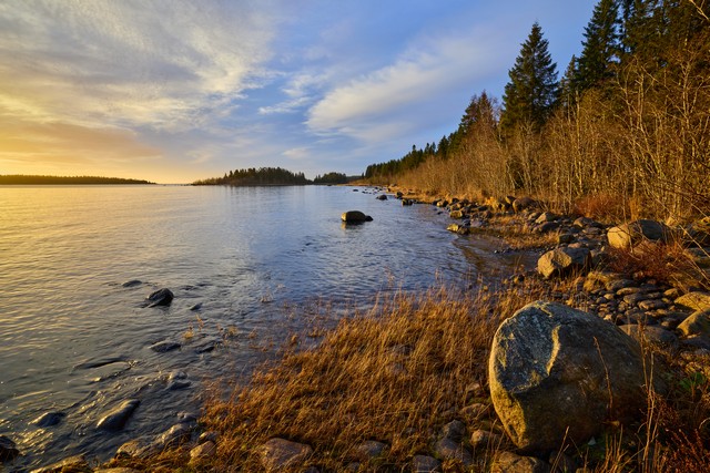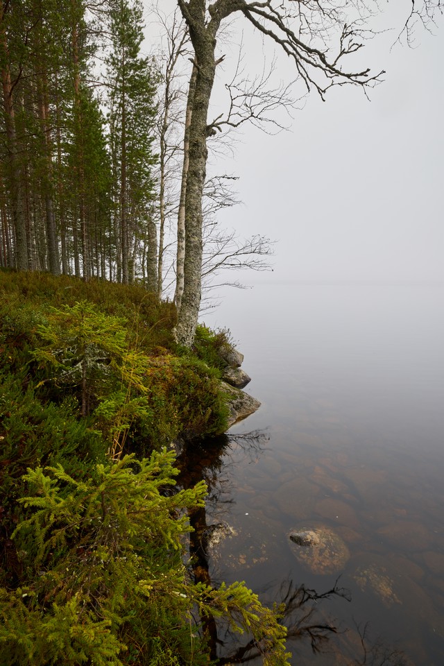 Jag fotograferade flera landskapsmotiv med stora kontraster mellan ljusa och mörka områden. När jag exponerade för högdagrarna och sedan justerade lågdagrarna i efterbehandlingen, blev resultaten tillfredsställande även i de mörka partierna på ISO 100. För dessa motiv använde jag den mekaniska slutaren, eftersom den elektroniska slutaren främst bör användas när högsta möjliga hastighet är viktigare än dynamiskt omfång och brushantering vid högre ISO.