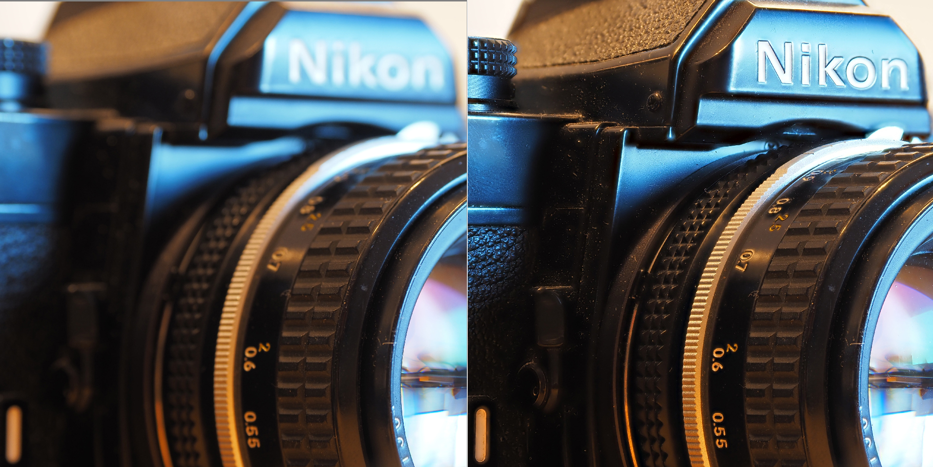 Skärpedjupet i den högra bilden går inte att komma ens i närheten av även om man bländar ner till f/22-f/32, och så små bländaröppningar ger dessutom en markant diffraktion med kraftigt försämrad skärpa som följd. Bländare f/4 och brännvidd 100mm på ca 50 cm fokusavstånd.