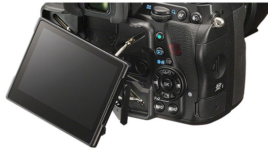 LCD-skärmen på K-1 Mark II har samma unika konstruktion som Mark I, vilket betyder att den behåller sin position längs den optiska axeln. Användaren kan inte bara vrida displayen 35° horisontellt och 45° vertikalt, utan även dra ut displayen från kameran och vrida den, och på så sätt få möjlighet att se skärmen ovanifrån i både liggande och stående bildformat. Fungerar också bättre i starkt solljus än standardskärmar eftersom man i många fall kan vinkla skärmen så att blänket försvinner. För dig som fotograferar när det är mörkt ute finns möjligheten att välja "nattläge för LCD" som ger en dämpad skärmbelysning i röd färg. Suverän skärm!