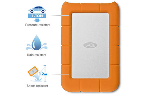 LaCie Rugged Mini hårddisk delar funktioner med vår populära Rugged Hard Disk, som slagtålighet, tålighet mot fall m.m. tack vare ett gummiöverdrag som ger extra skydd. Men är också regntålig och trycktålig, du kan ex.vis köra över den med en personbil och den fungerar fortfarande! Dess smidiga storlek gör den dessutom perfekt att ta med dig vart du vill.