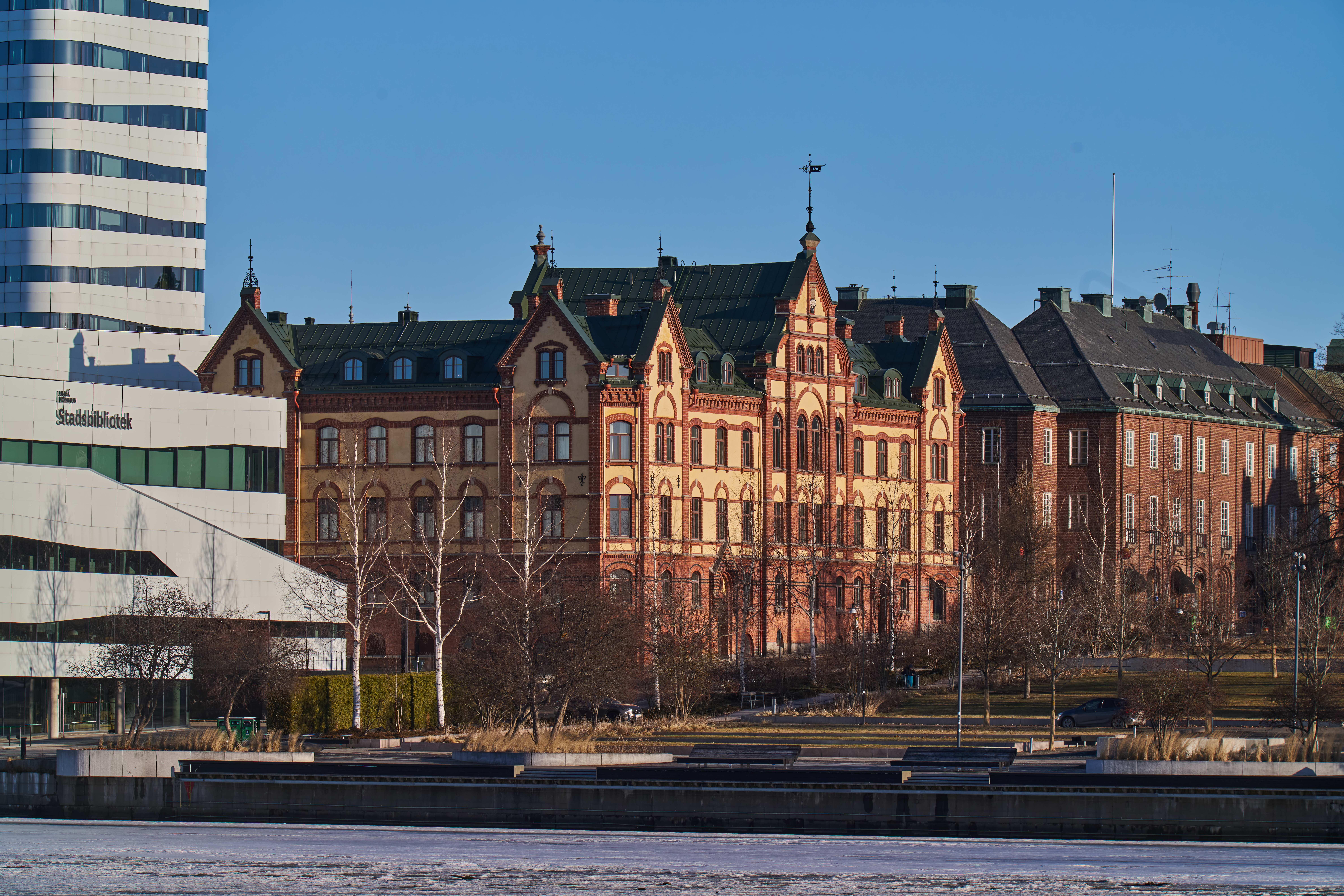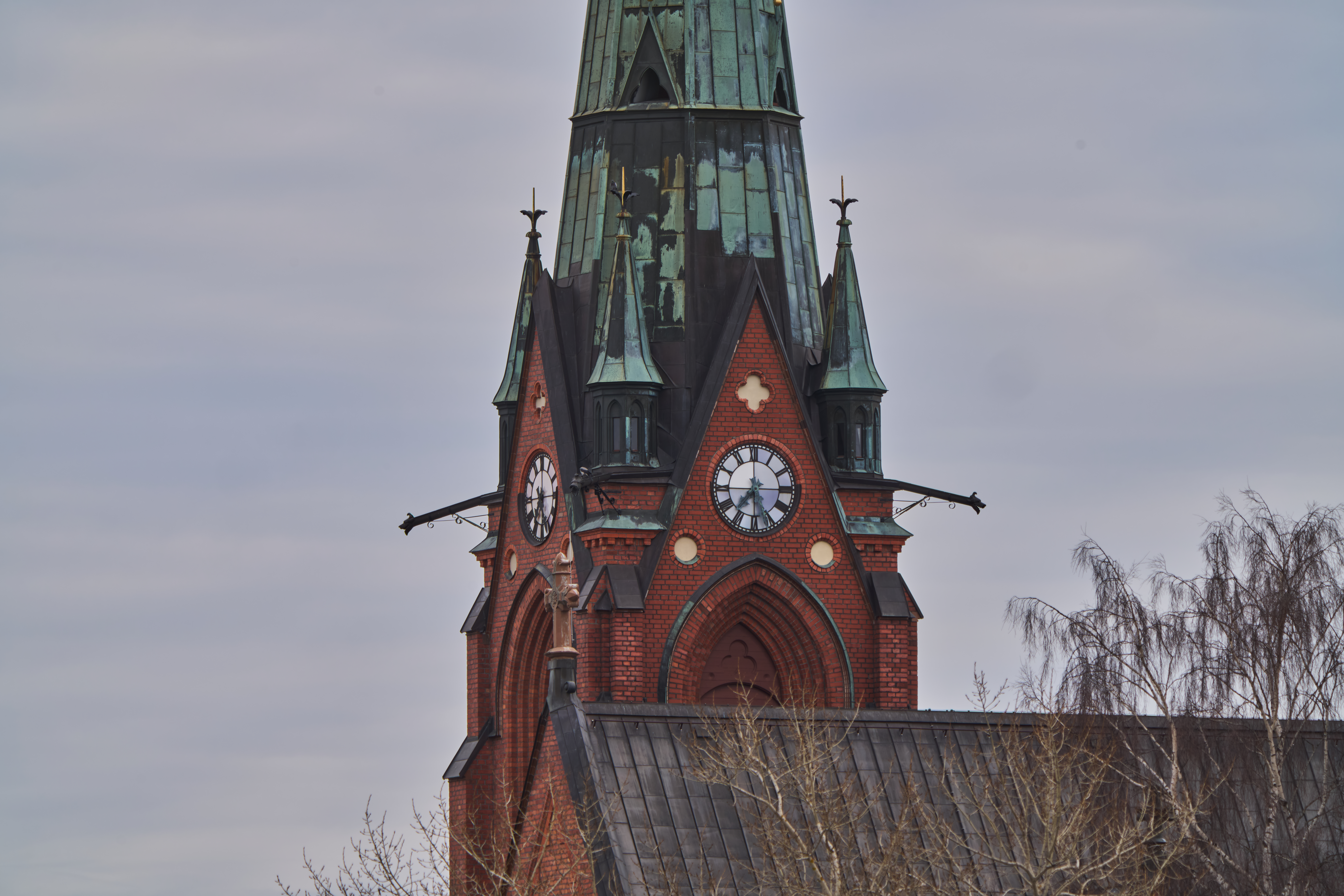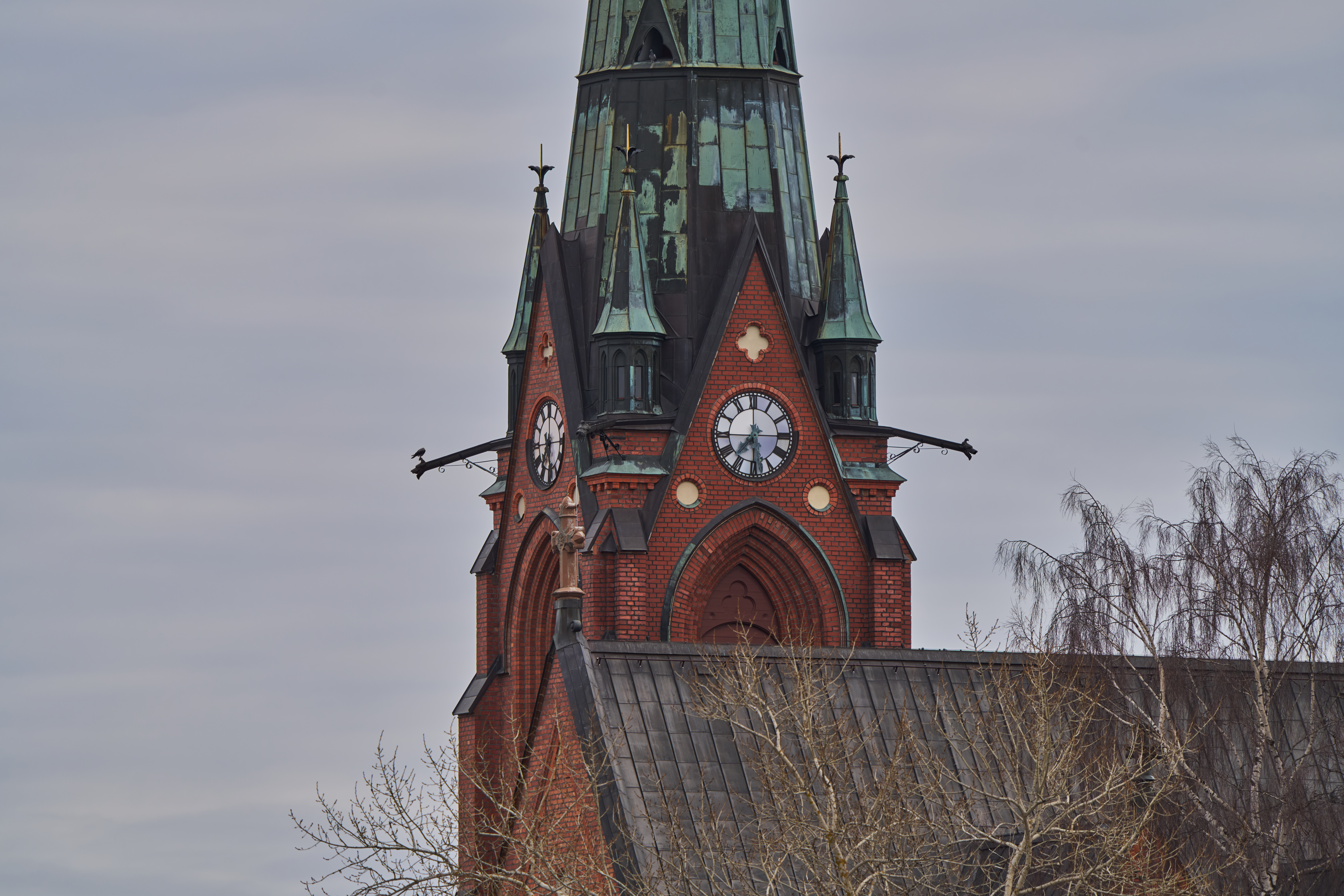 Samma motiv som ovan på 1200mm f/16 i 26MP-APS-läge, vilket ger motsvarande 1800mm. Taget från exakt samma plats som kyrkbilden ovan, ca 400 meter mellan kamera och kyrktorn.