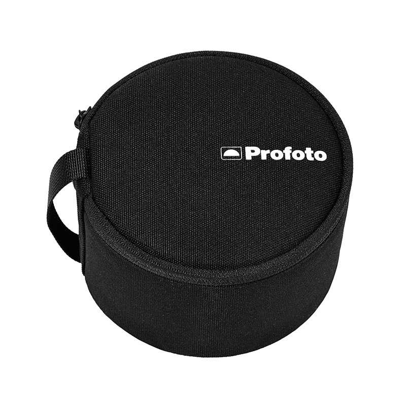 Den kan monteras snabbt och säkert på valfri Profoto-batteriblixt via den slitstarka Profoto-gummikragen med metallspänne.
