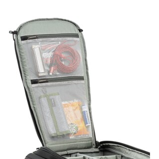 Med fästen på framsidan och sidopanelerna kan du bära ditt stativ och med en kabelvinda kan du bära filter och blixttillbehör.