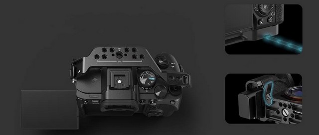 Arca snabbsplatta i botten gör buren kompatibel med ARCA stativhuvuden, samt snabbplattan på många Gimbals så som DJI RS2 och RSC2