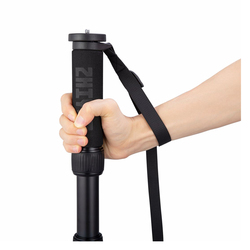 En vadderad och kompakt mini monopod med tre bensektioner och vridlås. Den har en maxlängd på cirka 64 cm och är som kortast endast 28 cm.