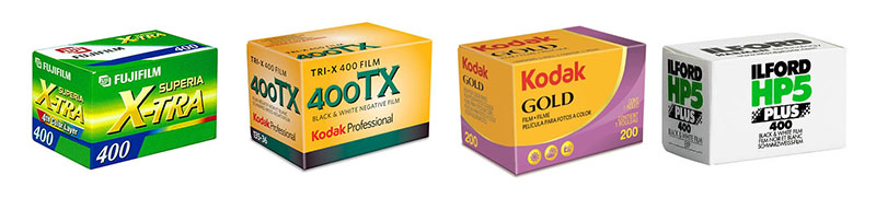 Exempel på några av de vanligaste negativa färg- och svartvita filmerna