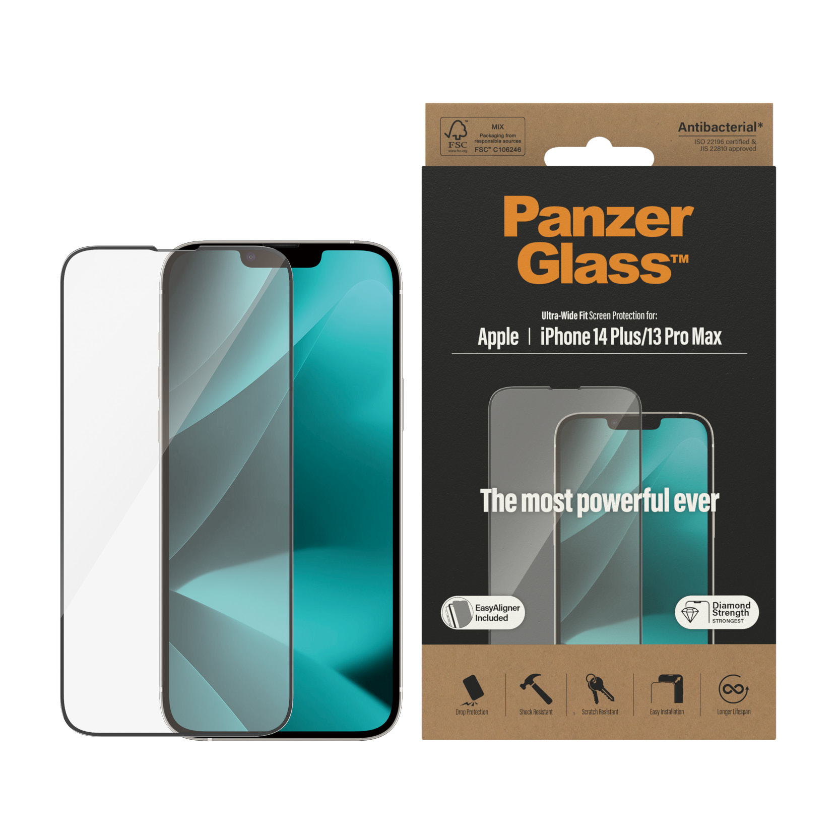 Ultra bred passform Reptålig, Stöttålig Antibakteriellt glass, fingeravtrycks avisande PanzerGlass