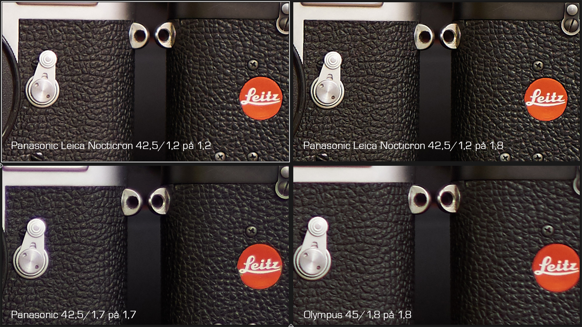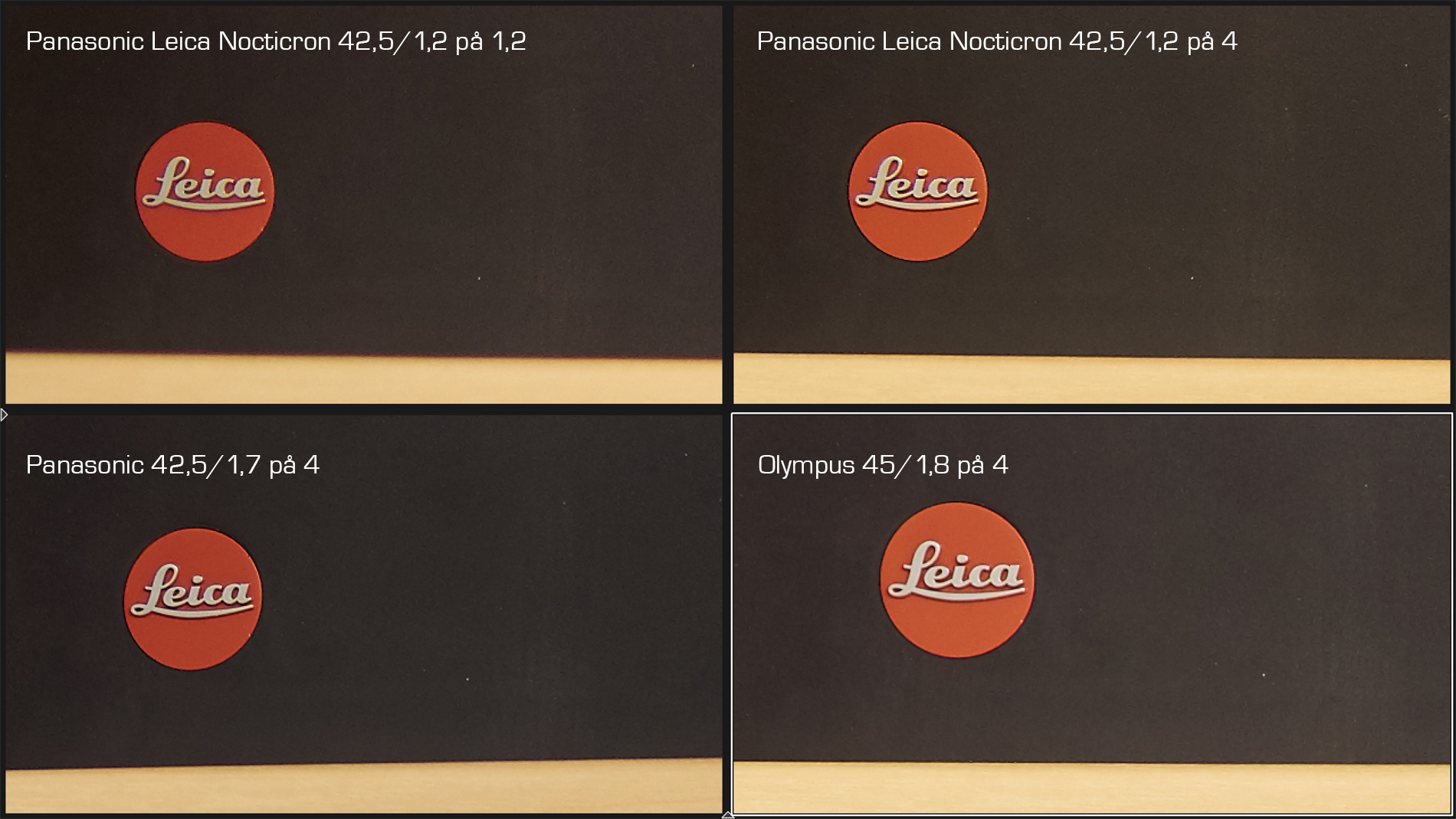 Bländare 4 i mitten. Vinnare är Leica DG Nocticron 42,5/1,2 ASPH O.I.S. OCH Panasonic Lumix G 42,5/1,7 ASPH Power O.I.S och Olympus M.Zuiko Digital 45/1,8 blir tvåa. Klicka på bilden för att se den i större storlek.