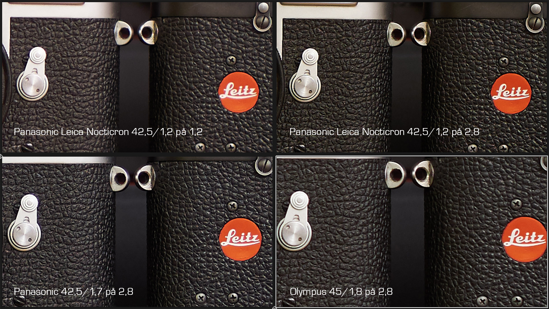 Bländare 4 i kant. Vinnare är Leica DG Nocticron 42,5/1,2 ASPH O.I.S. OCH Panasonic Lumix G 42,5/1,7 ASPH Power O.I.S och Olympus M.Zuiko Digital 45/1,8 blir tvåa. Klicka på bilden för att se den i större storlek.