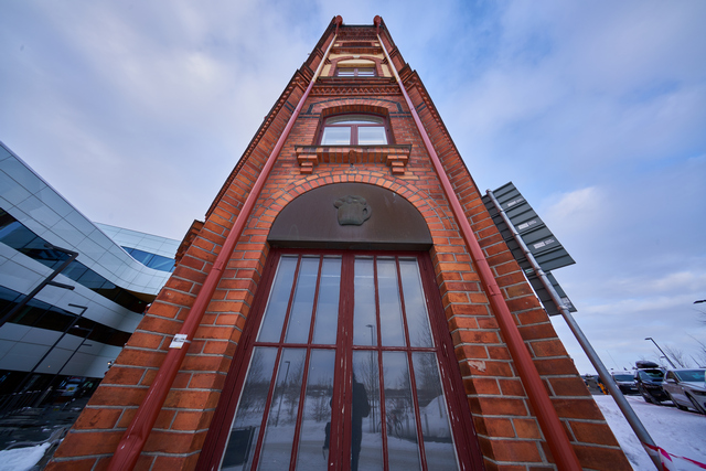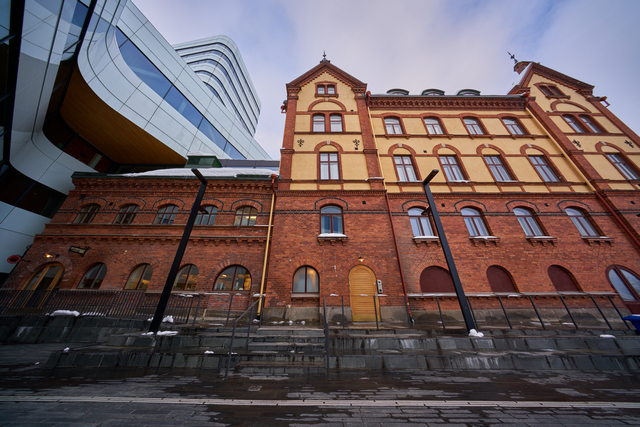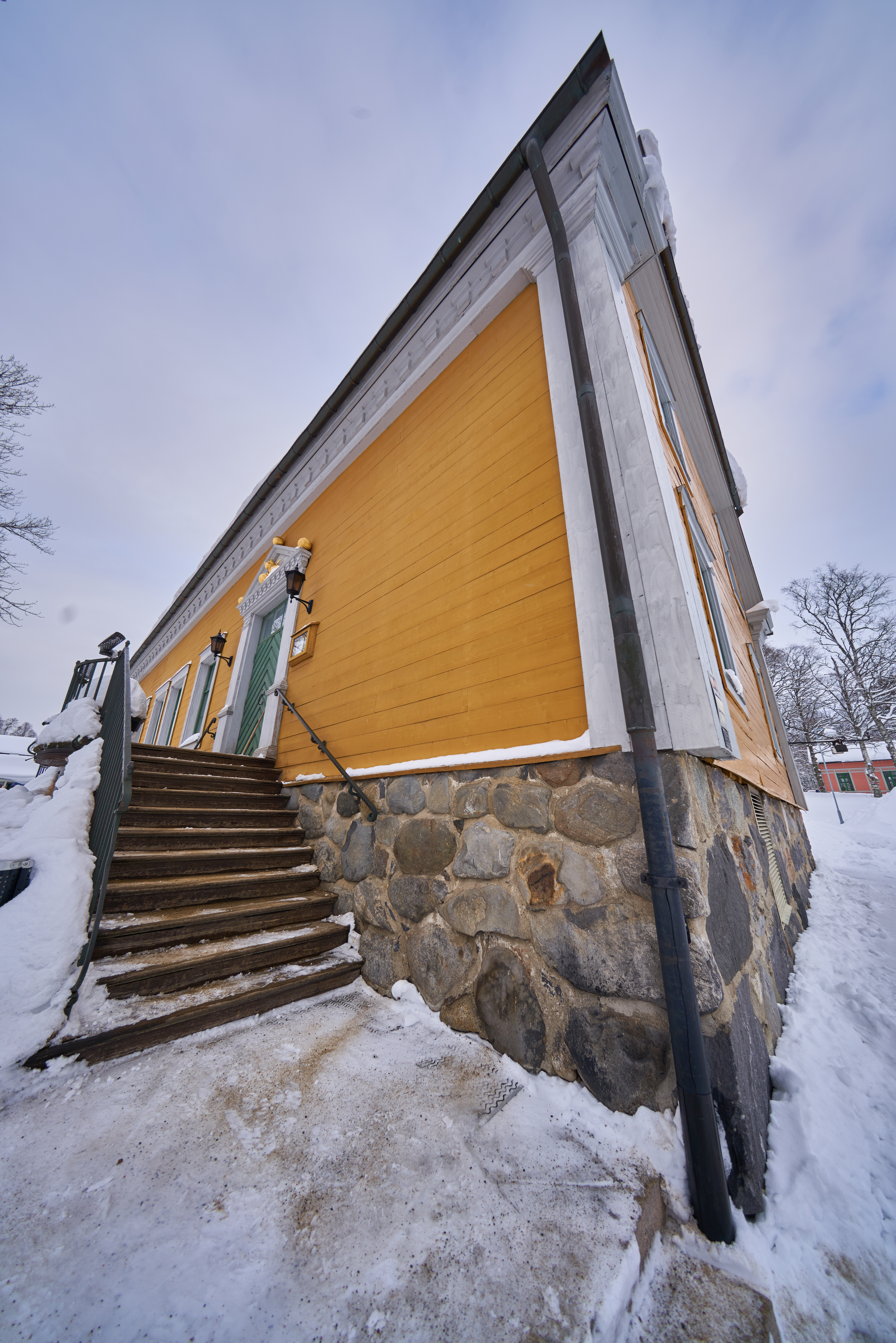 Bländare f/5,6, fokuserat på huset i bakgrunden.