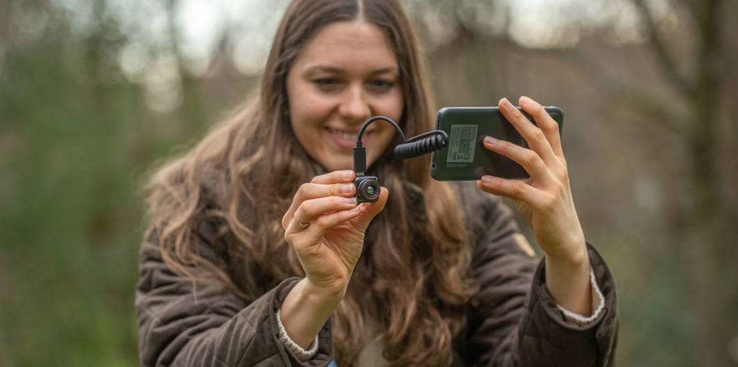 När du kopplar in Explorer E20 Plus i ett USB-C uttag får du tillgång till en termisk kamera som enkelt får plats i din ficka.