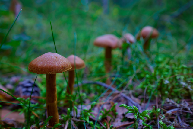 Brännvidd 35mm, bländare f/11, fokuserad på den lilla granen på mossklädda stenen.