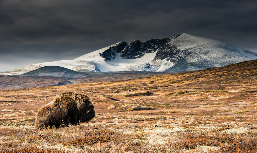 Tidigt på morgnarna lämmar vi stugorna för heldagar uppe på Dovrefjell. Under Rogers ledning vandrar vi genom ett rikt ekosystem med en flora och fauna som sträcker sig tillbaka till istiden. Huvudmotivet för våra dagar i fält är den imponerande myskoxen. På få ställen i världen är fotomöjligheterna av detta djur så goda som på Dovrefjell. När myskoxarna sakta och majestätiskt vandrar över det kuperade landskapet känns det som att transporteras tillbaka till en svunnen tid. Att få se de mäktiga djuren med sina säregna horn, tjocka päls och med de dramatiska bergen i bakgrunden är en storslagen fotoupplevelse. Har vi tur och kommer nära myskoxarna och med det omgivande landskapet som kuliss är kompositionsmöjligheterna många.